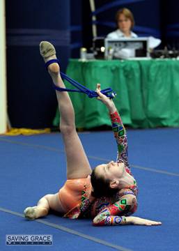 decorates it with colored tape to match their leotard. The hoop can be circled,